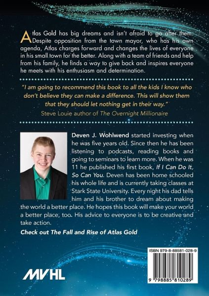 Atlas Gold has big dreams and isn't afraid to go after them. Despite opposition from the town mayor, who has his own agenda, Atlas charges forward and changes the lives of everyone in his small town for the better. Along with a team of friends and help from his family, he finds a way to give back and inspires everyone he meets with his enthusiasm and determination. His personal mantra is to Make the World a Better Place.