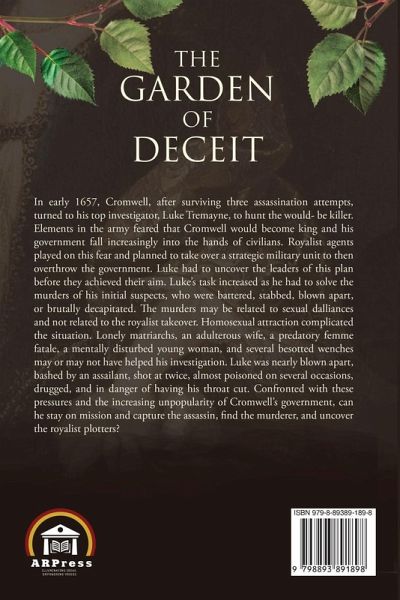 In early 1657, Cromwell, after surviving three assassination attempts, turned to his top investigator, Luke Tremayne, to hunt the would- be killer. Elements in the army feared that Cromwell would become king and his government fall increasingly into the hands of civilians. Royalist agents played on this fear and planned to take over a strategic military unit to then overthrow the government. Luke had to uncover the leaders of this plan before they achieved their aim. Luke's task increased as he had to solve the murders of his initial suspects, who were battered, stabbed, blown apart, or brutally decapitated. The murders may be related to sexual dalliances and not related to the royalist takeover. Homosexual attraction complicated the situation. Lonely matriarchs, an adulterous wife, a predatory femme fatale, a mentally disturbed young woman, and several besotted wenches may or may not have helped his investigation. Luke was nearly blown apart, bashed by an assailant, shot at twice, almost poisoned on several occasions, drugged, and in danger of having his throat cut. Confronted with these pressures and the increasing unpopularity of Cromwell's government, can he stay on mission and capture the assassin, find the murderer, and uncover the royalist plotters?