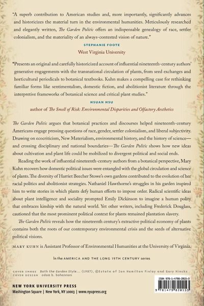 "The Garden Politic shows how Americans in the nineteenth century used plants to understand their nation, mobilizing them for many different political ends, from abolition to private property. It also shows the importance of everyday gardening practices to broader environmental understandings, and suggests the lessons that this earlier period might offer our contemporary environmental imaginations"--