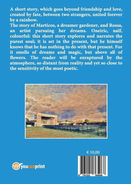 A short story, which goes beyond friendship and love, created by fate, between two strangers, united forever by a rainbow. The story of Marticos, a dreamer gardener, and Rossa, an artist pursuing her dreams. Oneiric, naïve, colourful: this short story explores and narrates the purest soul; it is set in the present, but he knows that he has nothing to do with that present. For it smells of dreams and magic, but above all of flowers. The reader will be enraptured by the atmosphere, so distant from reality and yet so close to the sensitivity of the most poetic.