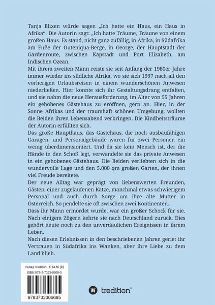 Tanja Blixen würde sagen Ich hatte ein Haus, ein Haus in Afrika . Die Autorin sagt: Ich hatte Träume, Träume von einem großen Haus. Es stand, nicht ganz zufällig, in Afrika, in Südafrika am Fuße der Outeniqua-Berge, in George, der Hauptstadt der Gardenroute, zwischen Kapstadt und Port Elizabeth, am Indischen Ozean.