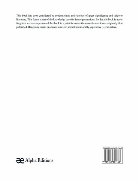 This book has been considered by academicians and scholars of great significance and value to literature. This forms a part of the knowledge base for future generations. So that the book is never forgotten we have represented this book in a print format as the same form as it was originally first published. Hence any marks or annotations seen are left intentionally to preserve its true nature.