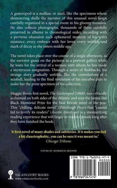A gasteropod is a mollusc or snail, like the specimens whose shimmering shells the narrator of this unusual novel keeps carefully organized in a special room in his gloomy mansion. He also collects photographs, thousands of them carefully preserved in albums in chronological order, recording with a perverse obsession each ephemeral moment of his wife's existence, every embrace with her lover, every wrinkle and mark of decay as she enters middle age. The novel takes place over the course of a single afternoon, as the narrator gazes on the pictures in a portrait gallery while he waits for the arrival of a woman with whom he has made a mysterious assignation. Through a series of flashbacks, his strange story gradually unfolds, like the convolutions of a seashell, leading to the final revelation of his macabre plan to make her the prize specimen of his collection ... Maggie Ross's first novel, The Gasteropod (1968), was critically acclaimed on both sides of the Atlantic and won the James Tait Black Memorial Prize for the best British novel of the year. This "chilling, delicate novel" (Pittsburgh Press) that "cannot fail to terrify its readers" (The Austin American) is a mesmerizing reading experience that will linger in readers' minds long after they have finished the book. 'The novel cannot fail to terrify its readers.' - The Austin American 'A literary marvel . . . a sharp, clever and devastating novel.' - El Paso Times 'A chilling, delicate novel . . . a fascinating experience in psychology.' - Pittsburgh Press 'A first novel of many shades and subtleties. If it makes you feel a bit claustrophobic, you can be sure it was meant to.' - Chicago Tribune 'A first novel of impressive originality and accomplishment.' - New Statesman 'Macabre, well-observed and elegantly constructed.' - Birmingham Evening Mail 'This is a dense and intelligent first novel, full of oddness and technical experiment and glittering with small, clever detail.' - The Guardian 'A clever, witty and marvellously well-written book.' - Listener 'The most skilful first novel by a woman since Iris Murdoch's Under the Net.' - Spectator