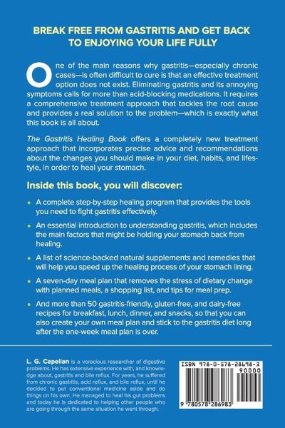 L. G. Capellan is a voracious researcher of digestive problems, with extensive experience and knowledge about gastritis and bile reflux. In 2013, he was diagnosed with chronic gastritis, acid reflux, and bile reflux-digestive problems that he suffered from for several years until he decided to take his health in his own hands and do things on his own.He spent more than 5 years researching a solution to his chronic gastritis and bile reflux. This included dedicating thousands of hours to reading medical and scientific research, articles on blogs and websites, and gastritis success stories on online health forums. His deep research provided him with a new understanding of what he had to do, how, and in what order to heal his gastritis and digestive problems.Now, through his Facebook group (The Gastritis Healing Group) and his book about gastritis, he helps other people who are going through the same situation he once went through, so that they can also get rid of gastritis and take back their health.To contact the author, you can reach him via email at contact@lgcapellan.com or find him in his Facebook group, ''The Gastritis Healing Group.''