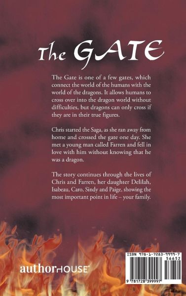 The Gate is one of a few gates, which connect the world of the humans with the world of the dragons. It allows humans to cross over into the dragon world without difficulties, but dragons can only cross if they are in their true figures. Chris started the Saga, as she ran away from home and crossed the gate one day. She met a young man called Farren and fell in love with him without knowing that he was a dragon. The story continues through the lives of Chris and Farren, her daughter Delilah, Isabeau, Caro, Sindy and Paige, showing the most important point in life - your family.