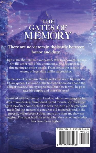 There are no victors in the battle between honor and duty. High in the mountains, a monastery falls to a powerful attack. On the other side of the continent, a gate begins to fail, threatening an entire people. From across the oceans, an enemy of legendary ability approaches. In the face of cataclysm, Brandt seeks the key to fighting the Lolani queen. He is one of the few who knows firsthand the danger this new enemy represents. But how far will he go to save his empire and those he loves? Reunited with her family in Landow, Alena now longs for her days of wandering. Summoned by old friends, she must once again leave her home behind to seek the truth of the gates. She must find the answers to centuries old mysteries, and in the process, will uncover a threat more dire than any they can imagine. The gates hold the secrets, but the cost of knowledge has never been higher.