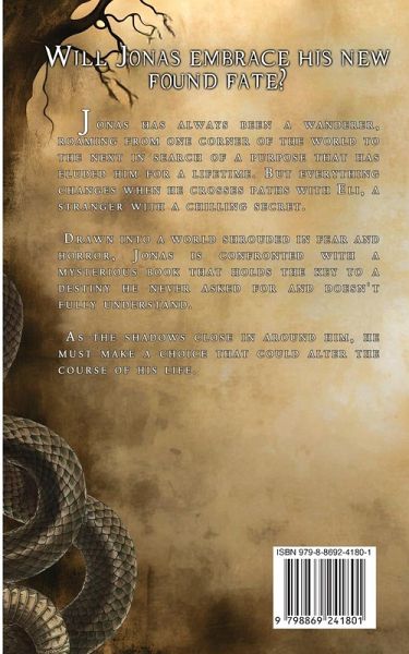 Jonas has always been a wanderer, roaming from one corner of the world to the next in search of a purpose that has eluded him for a lifetime. But everything changes when he crosses paths with Eli, a stranger with a chilling secret. Drawn into a world shrouded in fear and horror, Jonas is confronted with a mysterious book that holds the key to a destiny he never asked for. As the shadows close in around him, he must make a choice that will alter the course of his life, even though he doesn't fully understand the task at hand.