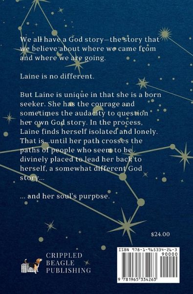 We all have a God story. The story that we believe about where we came from and where we are going. Laine is no different. But Laine is different in that she is a born seeker. Laine has the courage and sometimes the audacity to question her own God story. But in the process, Laine finds herself lonely and isolated. That is...until her path crosses the paths of people who seem to be divinely placed to lead her back to herself, a somewhat different God story... ...and her soul's purpose.