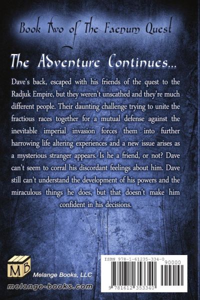 Dave's back, escaped with his friends of the quest to the Radjuk Empire, but they weren't unscathed and they're much different people. Their daunting challenge trying to unite the fractious races together for a mutual defense against the inevitable imperial invasion forces them into further harrowing life altering experiences and a new issue arises as a mysterious stranger appears. Is he a friend, or not? Dave can't seem to corral his discordant feelings about him. Dave still can't understand the development of his powers and the miraculous things he does, but that doesn't make him confident in his decisions.