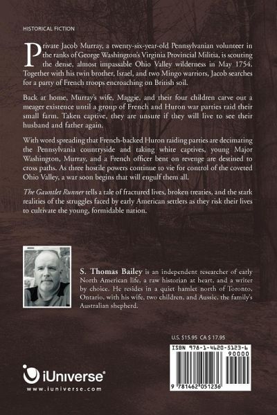 Private Jacob Murray, a twenty-six-year-old Pennsylvanian volunteer in the ranks of George Washington¿s Virginia Provincial Militia, is scouting the dense, almost impassable Ohio Valley wilderness in May 1754. Together with his twin brother, Israel, and two Mingo warriors, Jacob searches for a party of French troops encroaching on British soil. Back at home, Murray¿s wife, Maggie, and their four children carve out a meager existence until a group of French and Huron war parties raid their small farm. Taken captive, they are unsure if they will live to see their husband and father again. With word spreading that French-backed Huron raiding parties are decimating the Pennsylvania countryside and taking white captives, young Major Washington, Murray, and a French officer bent on revenge are destined to cross paths. As three hostile powers continue to vie for control of the coveted Ohio Valley, a war soon begins that will engulf them all. The Gauntlet Runner tells a tale of fractured lives, broken treaties, and the stark realities of the struggles faced by early American settlers as they risk their lives to cultivate the young, formidable nation.