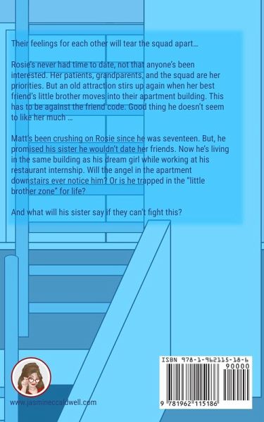 Their feelings for each other will tear the squad apart... Rosie's never had time to date, not that anyone's been interested. Her patients, grandparents, and the squad are her priorities. But an old attraction stirs up again when her best friend's little brother moves into their apartment building. This has to be against the friend code. Good thing he doesn't seem to like her much ... Matt's been crushing on Rosie since he was seventeen. But he promised his sister he wouldn't date her friends. Now he's living in the same building as his dream girl while working at his restaurant internship. Will the angel in the apartment downstairs ever notice him? Or is he trapped in the "little brother zone" for life? And what will his sister say if they can't fight this? This steamy new adult contemporary romance features found family, grandparent shenanigans, miscommunication, and two inexperienced leads fumbling their way to each other. While it is book three in The Geek Girl Squad series, each novel features a different couple getting their own HEA and can be read as a standalone. This is the second edition; the story is the same with an extra epilogue! Recommended Read, Author Shout Reader Ready Awards 2023