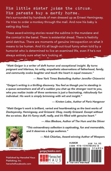His little sister joins the circus. His parents buy a nerdy horse. He's surrounded by hundreds of men dressed up as Ernest Hemingway. He tries to order a monkey through the mail. And now his baby is eating dog food. Matt Geiger's award-winning stories reveal the sublime in the mundane and the comical in the banal. There is existential dread. There is festivity amid detritus. There are moments of genuine introspection on what it means to be human. And it's all laugh-out-loud funny when told by a humorist who is determined to live an examined life, even if he's not always entirely sure what he's looking at.