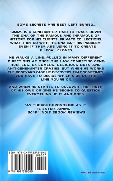 Some secrets are best left buried... Simms is a genehunter: a detective paid to track down the DNA of the famous and infamous of history for his clients' private collections. What they do with the DNA isn't his problem - even if they are using it to create illegal clones. He walks a line, pulled in a hundred different directions at once. The law, competing genehunters, ex-lovers, religious nuts and anti-genehunter crazies. But when he starts to work the Boneyard case he discovers that, sometimes, you have to decide which side of the line you're on. And when he starts to uncover the truth of his own origins he begins to question everything he is and does... A cyberpunk detective novel set on an Earth slowly going to hell. With added bonus material: Simms' World (characters and organisations of the Genehunter universe), Jumpjacker (a tale of jump nodes, brain plugins and high-tech crime) and 22nd Century Genie (the original Simms short story).