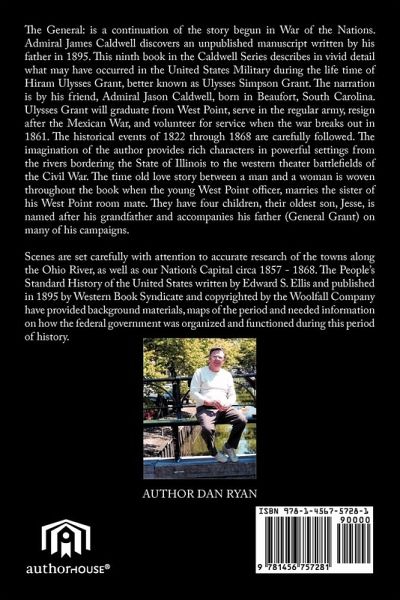 The General: is a continuation of the story begun in War of the Nations. Admiral James Caldwell discovers an unpublished manuscript written by his father in 1895. This ninth book in the Caldwell Series describes in vivid detail what may have occurred in the United States Military during the life time of Hiram Ulysses Grant, better known as Ulysses Simpson Grant. The narration is by his friend, Admiral Jason Caldwell, born in Beaufort, South Carolina. Ulysses Grant will graduate from West Point, serve in the regular army, resign after the Mexican War, and volunteer for service when the war breaks out in 1861. The historical events of 1822 through 1868 are carefully followed. The imagination of the author provides rich characters in powerful settings from the rivers bordering the State of Illinois to the western theater battlefields of the Civil War. The time old love story between a man and a woman is woven throughout the book when the young West Point officer, marries the sister of his West Point room mate. They have four children, their oldest son, Jesse, is named after his grandfather and accompanies his father (General Grant) on many of his campaigns. Scenes are set carefully with attention to accurate research of the towns along the Ohio River, as well as our Nation's Capital circa 1857 - 1868. The People's Standard History of the United States written by Edward S. Ellis and published in 1895 by Western Book Syndicate and copyrighted by the Woolfall Company have provided background materials, maps of the period and needed information on how the federal government was organized and functioned during this period of history.