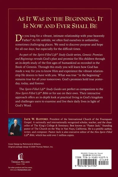 As it was in the beginning, it is now and ever shall be. Do you long for a vibrant, intimate relationship with your heavenly Father? As life unfold, we often find ourselves in unfamiliar, sometimes challenging places. We need to discover purpose and hope for all our days, but especially for the difficult times. As part of the Spirit-Filled Life Study Guide series, Genesis: Promises and Beginnings reveals God's plan and promise for His children through an in-depth study of the first ages of humankind as recorded in the Book of Genesis. Through this study you will learn how God has made a way for you to know Him and experience the vibrant relationship He desires to have with you. What was true "in the beginning" remains true for all your tomorrows. God's promises hold true yesterday, today, and forever. Features: Learn how to overthrow works of darkness and live in victory Discover God's plan for your life and His promises to you Designed to be used with the New Spirit-Filled Life Bible The Spirit-Filled Life Study Guides are perfect as companions to the New Spirit Filled Life Bible or for use on their own. Their interactive approach offers an in- depth look at piratical living in God's kingdom and challenges users to examine and live their daily lives in light of God's Word.
