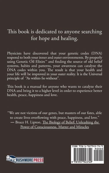 Physicists have discovered that your genetic codes (DNA) respond to both your inner and outer environments. By properly using Genetic Oil Elixirs(TM) and finding the source of old belief systems, habits and patterns, your awareness can catalyze the DNA codes within you. The result is that your health and your life will be improved in your outer reality. It is the Universal principle of "As within-So without". This book is a manual for anyone who wants to catalyze their DNA and bring it to a higher level in order to experience better health, peace, happiness and love.