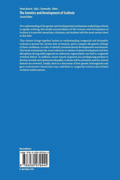 Our understanding of the genetic and developmental mechanisms underlying scoliosis is rapidly evolving, this timely second edition of The Genetics and Development of Scoliosis is to provide researchers, clinicians, and students with the most current views in this field.