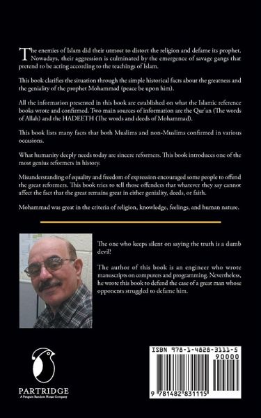 The enemies of Islam did their utmost to distort the religion and defame its prophet. Nowadays, their aggression is culminated by the emergence of savage gangs that pretend to be acting according to the teachings of Islam. This book clarifies the situation through the simple historical facts about the greatness and the geniality of the prophet Mohammad (peace be upon him). All the information presented in this book are established on what the Islamic reference books wrote and confirmed. Two main sources of information are the Qur'an (The words of Allah) and the HADEETH (The words and deeds of Mohammad). This book lists many facts that both Muslims and non-Muslims confirmed in various occasions. What humanity deeply needs today are sincere reformers. This book introduces one of the most genius reformers in history. Misunderstanding of equality and freedom of expression encouraged some people to offend the great reformers. This book tries to tell those offenders that whatever they say cannot affect the fact that the great remains great in either geniality, deeds, or faith. Mohammad was great in the criteria of religion, knowledge, feelings, and human nature.