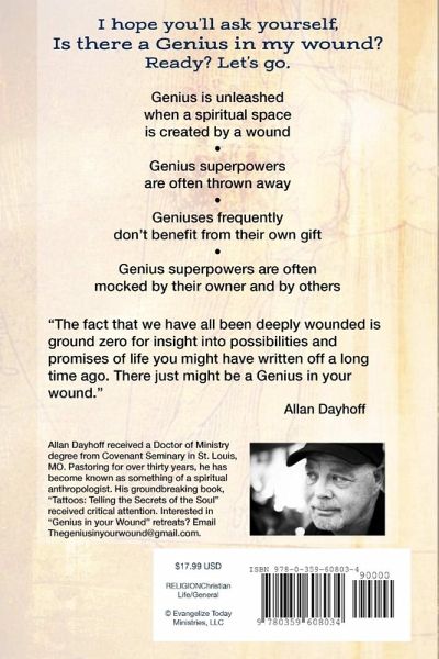 Hearing firsthand accounts with people, I began to see a relationship between a kind of unexplained insight into the experiences of others and the previously hidden, unseen effects of my own life story. Like the early morning sunrise after agonizingly long, cold, and dark wintry days, I began to warm to the idea that the chaos and cruelty that scars our lives is not the beginning nor the end of the story for any of us. Listening to these wounded souls I was amazed to discover that I already knew what they would say. I began to realize that the wounds of my own life might have given birth to a Genius ability to connect with others who suffer like I have. Genius may be the other side of our wound!