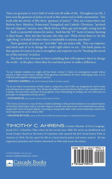 There are geniuses in every field of work and all walks of life. Throughout my life, I have seen the geniuses of justice at work in this nation and in faith communities. This book tells the stories of fifty-three ""geniuses of justice."" They are Conservative and Reform Jews, Mainline, Pentecostal, Evangelical and Catholic Christians, ""spiritual but not religious,"" women, men; Black, brown, white, gay and straight, young and old. Each is a powerful witness for justice. Each has the ""IT"" factor of justice burning in their bones. How did they become who they are? What drives them to ""do the right thing"" on behalf of others that is translatable to anyone, anywhere? These geniuses of justice are ""just folks"" who are justice folk. They can empower and teach each of us to change the world right where we are. This book passes on their genius for justice to you to strengthen and empower you for ""bending the moral arc of the universe"" to justice. This book is for everyone to learn something that will empower them to change the world - in the place where they live and have power to make a difference.