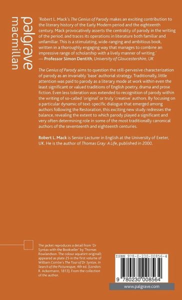 'Robert L. Mack's The Genius of Parody makes an exciting contribution to the literary history of the Early Modern period and the eighteenth century. Mack provocatively asserts the centrality of parody in the writing of the period, and traces its operations in literature both familiar and unfamiliar. This is a stimulating, wide-ranging and ambitious book, written in a thoroughly engaging way that manages to combine an impressive range of scholarship with a lively manner of writing.' - Professor Simon Dentith, University of Gloucestershire, UK