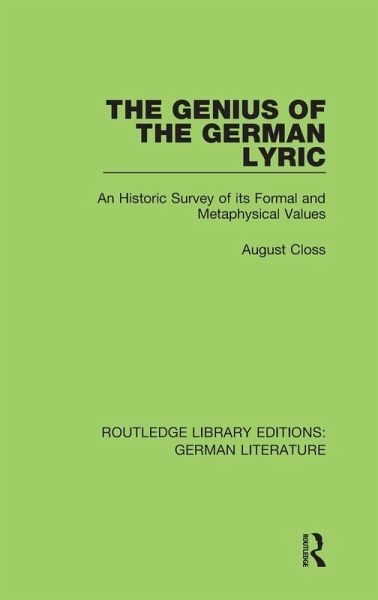 Originally published in 1938, this remains one of the few comprehensive studies of the German lyric, ranging from the Middle Ages to the 1960s. By the use of detailed critical analysis the book interprets the essence of German lyric poetry and includes a study of the phases of German literature in the early 20th Century.