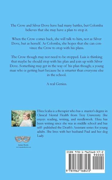 The Crow and Silver Dove have had many battles, but Colomba believes that she may have a plan to stop it. When the Crow comes back, she will talk to him, not as Silver Dove, but as herself. As Colomba, she hopes that she can convince the Crow to stop with his plans. The Crow though may not need to be stopped. Luis is thinking that maybe he should stop with his plan and join up with Silver Dove. Something may get in the way of his plan though; a young man who is getting hurt because he is smarter than everyone else in the school. A real Genius.