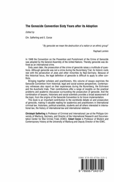 No need to say that this book is an important contribution to the worldwide debate on and prosecution of genocide, making it valuable reading for academics and practitioners in international criminal law, historians, political scientists, students and all others interested in international law, the history of international law and international relations.