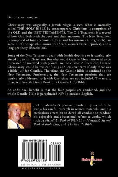 Confined to the New Testament New Testament portions are particularly addressed to Jewish Christians are not included The four gospels are combined whole Gentile Bible is paraphrased KJV in modern English 584 pp.