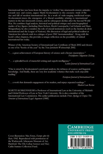 International law was born from the impulse to 'civilize' late nineteenth-century attitudes towards race and society, argues Martti Koskenniemi in this study of the rise and fall of modern international law. This book combines legal analysis, historical and political critique and semi-biographical studies of key figures and institutions.