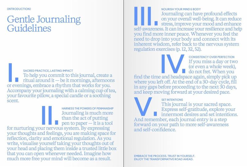 Dieses undatierte Tagebuch lädt dich ein, in deinem eigenen Tempo zu erkunden, zu reflektieren und zu wachsen - mit einem 90-Tage-Journaling-Zyklus. Tägliche Journaling-Fragen regen dich dazu an, deine emotionalen, mentalen, verhaltensbezogenen, kognitiven und sozialen Landschaften zu erkunden, um eine umfassende Reflexion zu ermöglichen. Die Reise wird durch drei tragbare Techniken zur Regulierung des Nervensystems unterstützt, die dir helfen, dich durch Atemübungen und Bewegung wieder mitdeinem Körper zu verbinden.
