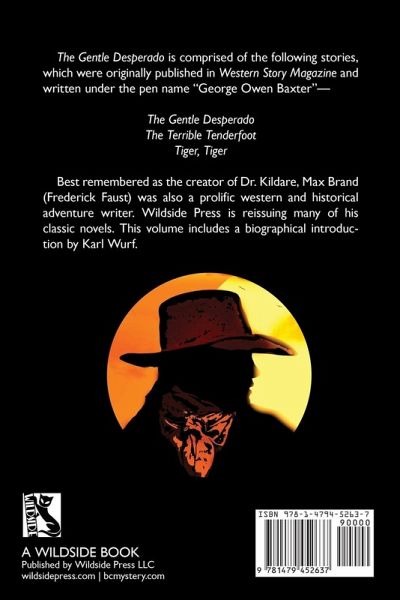 The Gentle Desperado is comprised of the following stories, which were originally published in Western Story Magazine and written under the pen name "George Owen Baxter": The Gentle Desperado, The Terrible Tenderfoot, and Tiger, Tiger. Most remembered for his character of Dr. Kildare, Max Brand (Frederick Faust) was also a prolific western and historical adventure writer. Wildside Press is reissuing many of his classic novels. This volume features a biographical introduction.