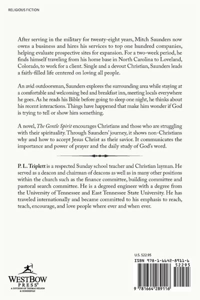 After serving in the military for twenty-eight years, Mitch Saunders now owns a business and hires his services to top one hundred companies, helping evaluate prospective sites for expansion. For a two-week period, he finds himself traveling from his home base in North Carolina to Loveland, Colorado, to work for a client. Single and a devout Christian, Saunders leads a faith-filled life centered on loving all people. An avid outdoorsman, Saunders explores the surrounding area while staying at a comfortable and welcoming bed and breakfast inn, meeting locals everywhere he goes. As he reads his Bible before going to sleep one night, he thinks about his recent interactions. Things have happened that make him wonder if God is trying to tell or show him something. A novel, The Gentle Spirit encourages Christians and those who are struggling with their spirituality. Through Saunders' journey, it shows non-Christians why and how to accept Jesus Christ as their savior. It communicates the importance and power of prayer and the daily study of God's word.