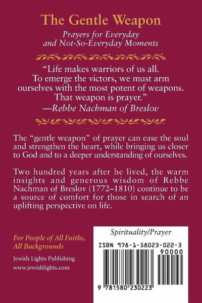 A "little treasure" of prayers that will open your heart and soul and give voice to your deepest yearnings. Using the startling wisdom of Rebbe Nachman of Breslov, who lived two hundred years ago, The Gentle Weapon will help you talk with God and enable you to hear your own voice as well.