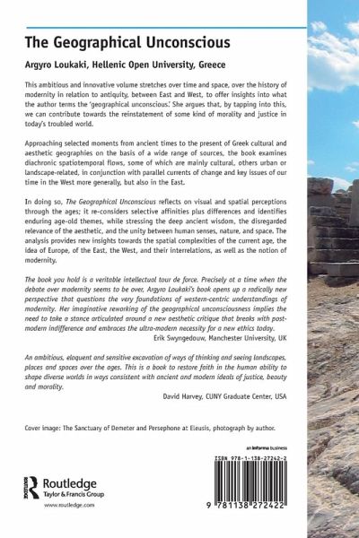 This ambitious and innovative volume stretches over time and space, over the history of modernity in relation to antiquity, between East and West, to offer insights into what the author terms the 'geographical unconscious.' She argues that, by tapping into this, we can contribute towards the reinstatement of some kind of morality and justice in today's troubled world. Approaching selected moments from ancient times to the present of Greek cultural and aesthetic geographies on the basis of a wide range of sources, the book examines diachronic spatiotemporal flows, some of which are mainly cultural, others urban or landscape-related, in conjunction with parallel currents of change and key issues of our time in the West more generally, but also in the East. In doing so, The Geographical Unconscious reflects on visual and spatial perceptions through the ages; it re-considers selective affinities plus differences and identifies enduring age-old themes, while stressing the deep ancient wisdom, the disregarded relevance of the aesthetic, and the unity between human senses, nature, and space. The analysis provides new insights towards the spatial complexities of the current age, the idea of Europe, of the East, the West, and their interrelations, as well as the notion of modernity.