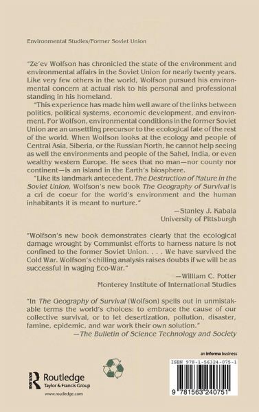 In "The Geography of Survival" Wolfson speaks out about the world's choice to embrace the cause of our collective survival or to let desertisation, pollution, disaster, famine, epidemic, and war work their own solution.