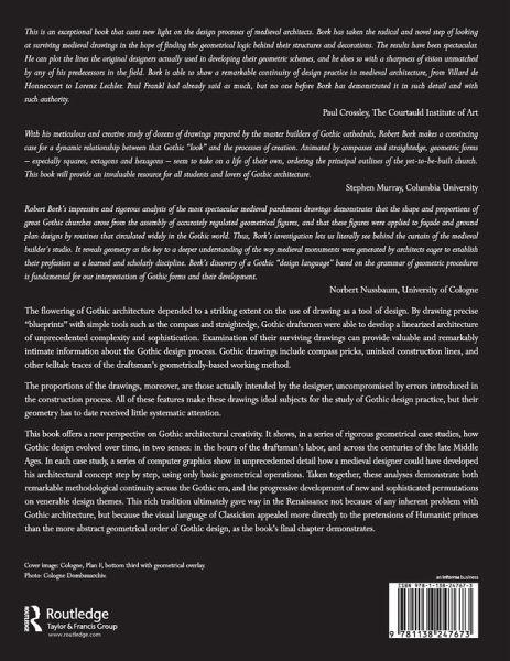 The flowering of Gothic architecture depended to a striking extent on the use of drawing as a tool of design. By drawing precise "blueprints" with simple tools such as the compass and straightedge, Gothic draftsmen were able to develop a linearized architecture of unprecedented complexity and sophistication. Examination of their surviving drawings can provide valuable and remarkably intimate information about the Gothic design process. Gothic drawings include compass pricks, uninked construction lines, and other telltale traces of the draftsman's geometrically based working method. The proportions of the drawings, moreover, are those actually intended by the designer, uncompromised by errors introduced in the construction process. All of these features make these drawings ideal subjects for the study of Gothic design practice, but their geometry has to date received little systematic attention. This book offers a new perspective on Gothic architectural creativity. It shows, in a series of rigorous geometrical case studies, how Gothic design evolved over time, in two senses: in the hours of the draftsman's labor, and across the centuries of the late Middle Ages. In each case study, a series of computer graphics show in unprecedented detail how a medieval designer could have developed his architectural concept step by step, using only basic geometrical operations. Taken together, these analyses demonstrate both remarkable methodological continuity across the Gothic era, and the progressive development of new and sophisticated permutations on venerable design themes. This rich tradition ultimately gave way in the Renaissance not because of any inherent problem with Gothic architecture, but because the visual language of Classicism appealed more directly to the pretensions of Humanist princes than the more abstract geometrical order of Gothic design, as the book's final chapter demonstrates.