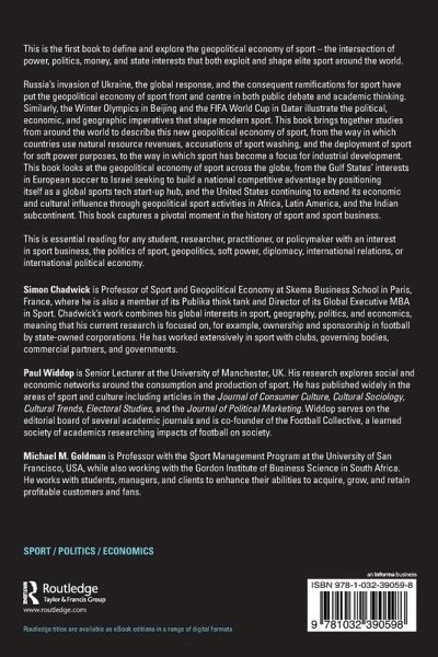 Russia's invasion of Ukraine, the global response, and the consequent ramifications for sport have put the geopolitical economy of sport front and centre in both public debate and academic thinking. Similarly, the Winter Olympics in Beijing and the FIFA World Cup in Qatar illustrate the political, economic, and geographic imperatives that shape modern sport. This book brings together studies from around the world to describe this new geopolitical economy of sport, from the way in which countries use natural resource revenues, accusations of sport washing, and the deployment of sport for soft power purposes, to the way in which sport has become a focus for industrial development. This book looks at the geopolitical economy of sport across the globe, from the Gulf States'interests in European soccer to Israel seeking to build a national competitive advantage by positioning itself as a global sports tech start-up hub, and the United States continuing to extend its economic and cultural influence through geopolitical sport activities in Africa, Latin America, and the Indian subcontinent. This book captures a pivotal moment in the history of sport and sport business.