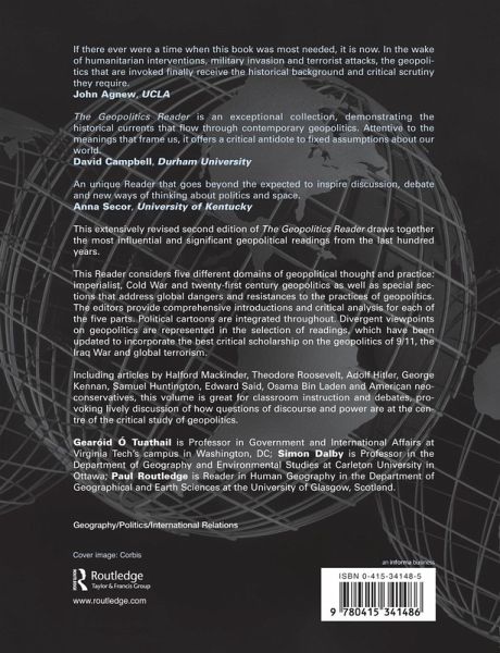 This extensively revised second edition of The Geopolitics Reader draws together the most influential and significant geopolitical readings from the last hundred years. A compendium of divergent viewpoints of global conflict and change, it includes readings from Halford Mackinder, Theodore Roosevelt, Adolf Hitler, George Kennan, Samuel Huntington, Edward Said, Osama Bin Laden and American neoconservatives. It draws on the most illuminating examples of imperial, Cold War and contemporary geopolitics, as well as new environmental themes, global dangers and multiple resistances to the practices of geopolitics.