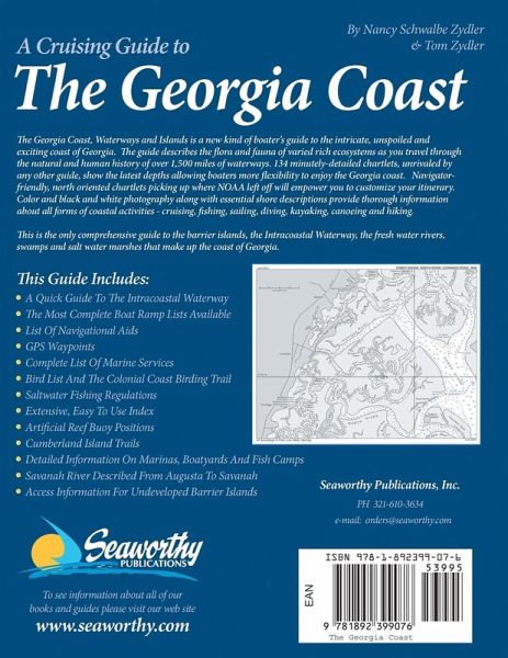 The Georgia Coast is a new kind of boater's guide to the intricate, unspoiled and exciting coast of Georgia. The guide describes the flora and fauna of varied rich ecosystems as you travel through the natural and human history of over 1,500 miles of waterways. With 134 minutely-detailed chartlets, it is unrivaled by any other guide. The Georgia Coast shows the latest depths allowing boaters more flexibility to enjoy the Georgia coast. Navigator-friendly, north oriented chartlets picking up where NOAA left off will empower you to customize your itinerary. Color and black and white photography along with essential shore descriptions provide thorough information about all forms of coastal activities: cruising, fishing, sailing, diving, kayaking, canoeing, and hiking. This Guide Includes: A Quick Guide to the Intracoastal Waterway List of Navigational Aides GPS Waypoints Bird list and the Colonial Coast Birding trail Savannah River Described from Augusta to Savannah Coverage Area: Plants & Animals of the Barrier Islands Savannah River from New Savannah Lock & Dam to Port Wentworth Savannah River to Ossabaw Sound Ossabaw Sound to St. Catherines Sound St. Catherines Sound to Sapelo Sound Sapelo Sound to Altamaha Sound Altamaha Sound to St. Simons Sound Jekyll Creek to St. Andrew Sound St. Andrew Sound to St. Marys River