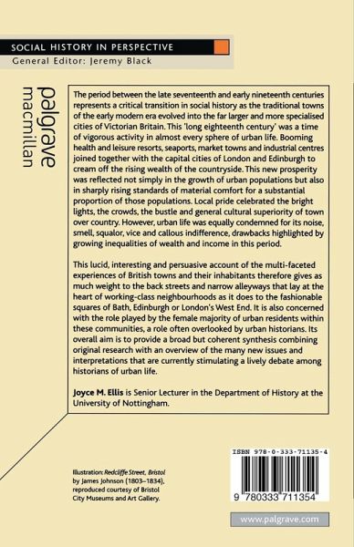The period between the late seventeenth and early nineteenth centuries represents a critical period of transition in urban history as the traditional towns of the early modern era evolved into the far larger and more specialised cities of Victorian Britain. This 'long eighteenth century' was a time of vigorous activity in almost every sphere of urban life. Booming health and leisure resorts, seaports, market towns and industrial centres, joined together with the capital cities of London and Edinburgh to cream off the rising wealth of the countryside. This new prosperity was reflected not simply in the growth of urban populations but also in sharply rising standards of material comfort for a substantial proportion of those populations. Local pride celebrated the bright lights, the crowds, the bustle and general cultural superiority of town over country. However, urban life was equally condemned for its noise, smell, squalor, vice and callous indifference, drawbacks highlighted by growing inequalities of wealth and income in this period. This lucid, interesting and persuasive account of the multi-facted experiences of British towns and their inhabitants therefore gives as much weight to the back streets and narrow alleyways that lay at the heart of working-class neighbourhoods as it does to the fashionable squares of Bath, Edinburgh or London's West End. It is also concerned with the role played by the female majority of urban residents within these communities, a role often overlooked by urban historians in the past. Its overall aim is to provide a broad but coherent synthesis combining original research with an overview of the many new issues and interpretations that are currently stimulating a lively debate among historians of urban life.