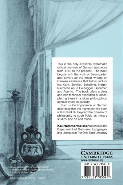 This book, first published in 2002, is a systematic critical overview of German aesthetics from 1750 to the present. It begins with the work of Baumgarten and covers all the major writers on German aesthetics that follow, including Kant, Schiller, Schelling, Hegel, Nietzsche, Heidegger, Gadamer and Adorno. The book offers a clear and non-technical exposition of ideas, placing these in a wider philosophical context where necessary. Such is the importance of German aesthetics that the market for this book will extend far beyond the domain of philosophy to such fields as literary studies, fine art and music.