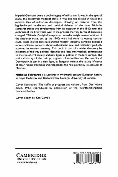 This book is part of a wider discovery by historians of the way political identities and ideas intermeshed, contributing to the rise of civil society and new types of politics in modern Europe. The political history of the main protagonist of anti-militarism, German Social Democracy, is cast in a new light, as Stargadt reveals the lasting influence of older radical traditions and reappraises the role played by its espousal of Marxism.