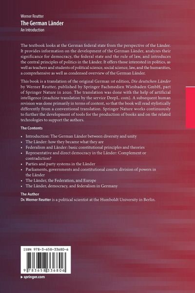 This book is a translation of the original German 1st edition, Die deutschen Länder by Werner Reutter, published by Springer Fachmedien Wiesbaden GmbH, part of Springer Nature in 2020. The translation was done with the help of artificial intelligence (machine translation by the service DeepL. com). A subsequent human revision was done primarily in terms of content, so that the book will read stylistically differently from a conventional translation. Springer Nature works continuously to further the development of tools for the production of books and on the related technologies to support the authors.