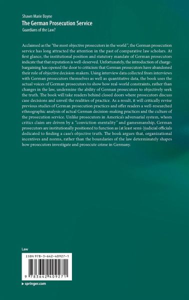 Acclaimed as the "the most objective prosecutors in the world", the German prosecution service has long attracted the attention in the past of comparative law scholars. At first glance, the institutional position and statutory mandate of German prosecutors indicate that that reputation is well-deserved. Unfortunately, the introduction of charge-bargaining has opened the door to criticism that German prosecutors have abandoned their role of objective decision-makers. Using interview data collected from interviews with German prosecutors themselves as well as quantitative data, the book uses the actual voices of German prosecutors to show how real-world constraints, rather than changes in the law, undermine the ability of German prosecutors to objectively seek the truth. The book will take readers behind closed doors where prosecutors discuss case decisions and unveil the realities of practice. As a result, it will critically revise previous studies of German prosecution practices and offer readers a well-researched ethnographic analysis of actual German decision-making practices and the culture of the prosecution service. Unlike prosecutors in America's adversarial system, whom critics claim are driven by a "conviction-mentality" and gamesmanship, German prosecutors are institutionally positioned to function as (at least semi-)judicial officials dedicated to finding a case's objective truth. The book argues that, organizational incentives and norms, rather than the boundaries of the law determinately shapes how prosecutors investigate and prosecute crime in Germany.