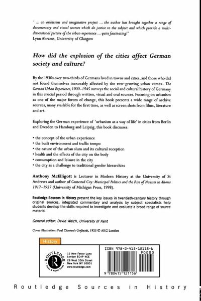By the 1930s over two-thirds of Germans lived in towns and cities, and those who did not found themselves inexorably affected by the ever-growing urban vortex. The German Urban Experience 1900 - 1945 surveys the social and cultural history of Germany in this crucial period through written, visual and oral sources. Focusing on urbanism as one of the major forces of change, this book presents a wide range of archive sources, many available for the first time, as well as film scenes, literature and art.