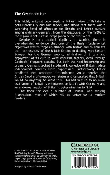 This book explains Hitler's view of Britain as both Nordic ally and role model. Gerwin Strobl shows that there was a surprising level of affection for Britain and British culture among ordinary Germans, from the discourses of the 1920s to the vigorous anti-British propaganda of the war years. Despite Hitler's tactical duplicity at Munich, there is overwhelming evidence that one of the Nazis' fundamental objectives was to forge an alliance with Britain and to emulate the 'ruthlessness' of the British Empire in dealing with eastern Europe. For the German public, admiration of Britain and enjoyment of its culture were enduring factors, even during Goebbels' frequent attacks; but both the Reich leadership and ordinary Germans otherwise lacked first-hand knowledge of Britain, while independent sources were suppressed. The book includes a number of unusual and striking illustrations, most of which will be unfamiliar to modern readers.