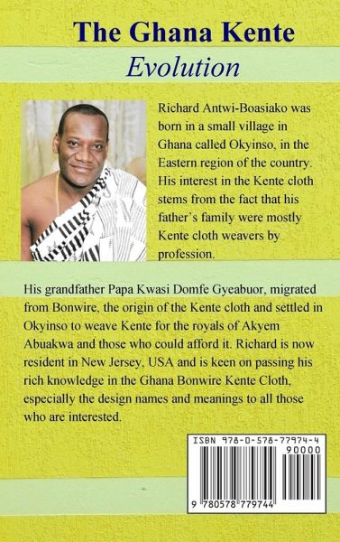 The evolution of the Ghana Bonwire Kente cloth. The meanings of the cloth names, the design names, and the colors used in Kente cloth weaving. The evolution of the Kente cloth from being a Royal cloth to being a cloth for all and for all occasions. The traditional and contemporary views on the Ghana Bonwire Kente cloth.