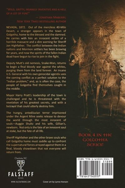 NEVADA, 1872. Out of the merciless 40-Mile Desert, a stranger appears in the town of Golgotha, home to the blessed and the damned. He carries with him an innocent victim of a horrible massacre and a dire warning for Sheriff Jon Highfather. The conflict between the Indian nations and Mormon settlers has been brewing for years, and now the spirits of the fallen Indian dead have begun to rise to join in the fight. Deputy Mutt's old nemesis, Snake-Man, returns to begin a final bloody war against the Whites, purging them from the land forever. An insane U.S. General with his own genocidal agenda sees the coming conflict as a perfect solution to the "Indian problem," and, as is often the case, the people of Golgotha find themselves caught in the middle. Mayor Harry Pratt's leadership of the town is challenged and he is threatened with the revelation of his greatest secrets, and with a betrayal that could utterly destroy him. The hungry, antediluvian terror imprisoned under the Argent Mine seeks release to devour the world through the most innocent of souls-Auggie Shultz and his wife, Gillian's, newborn. Not only is the fate of an innocent soul at stake, but the fate of all life. The Ghost Dance Judgement is the fourth book in the Golgotha series from R.S. Belcher, the author of The Brotherhood of the Wheel series and The Queen's Road.