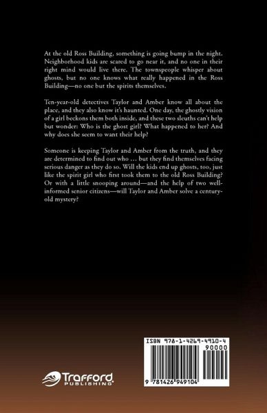 At the old Ross Building, something is going bump in the night. Neighborhood kids are scared to go near it, and no one in their right mind would live there. The townspeople whisper about ghosts, but no one knows what really happened in the Ross Building-no one but the spirits themselves. Ten-year-old detectives Taylor and Amber know all about the place, and they also know it's haunted. One night, the ghostly vision of a girl beckons them both inside, and these two sleuths can't help but wonder: Who is the ghost girl? What happened to her? And why does she seem to want their help? Someone is keeping Taylor and Amber from the truth, and they are determined to find out who ... but they find themselves facing serious danger as they do so. Will the kids end up ghosts, too, just like the spirit girl who first took them to the old Ross Building? Or with a little snooping around-and the help of two well-informed senior citizens-will Taylor and Amber solve a century-old mystery?